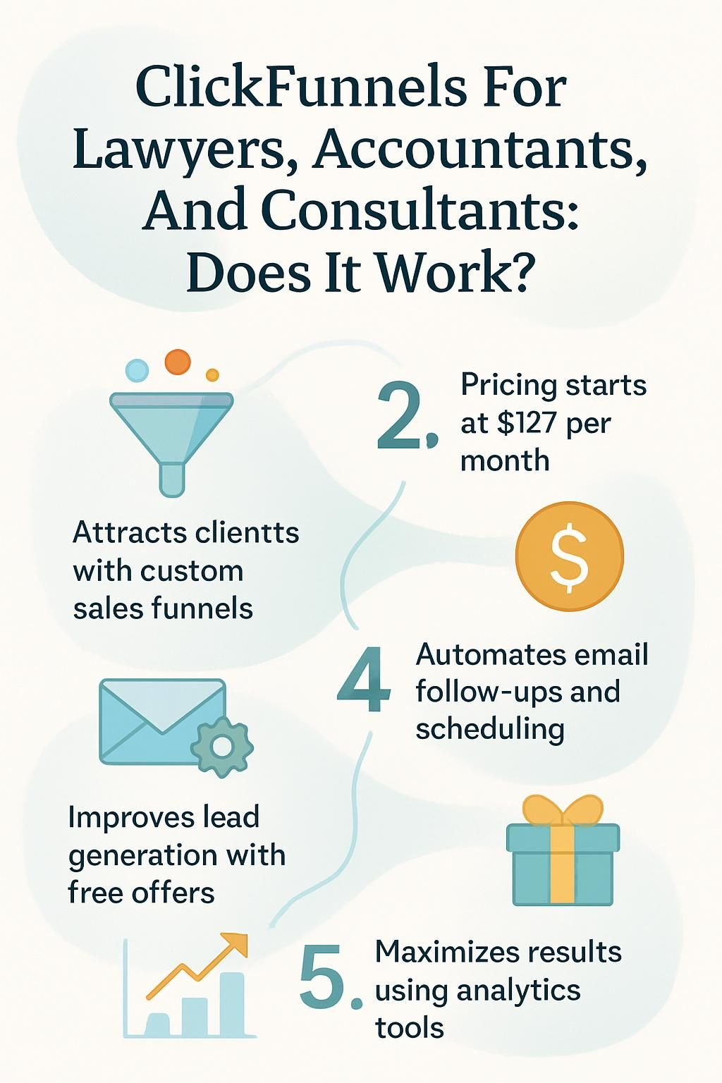 ClickFunnels can work well for lawyers, accountants, and consultants. It helps bring in clients and grow your business faster. You can create funnels, automate tasks, and boost sales with ease.