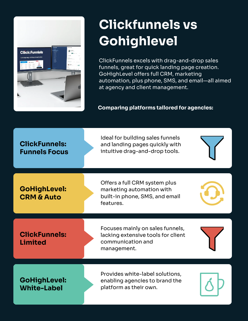 Struggling to decide between ClickFunnels and GoHighLevel for your agency? ClickFunnels is known for building sales funnels, while GoHighLevel offers an all-in-one tool designed just for agencies.