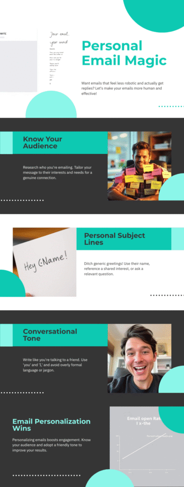 Writing personal emails can boost your success. Focus on your audience and use their names to connect. Keep your messages clear and friendly. Add value right away, so they see what’s in it for them.